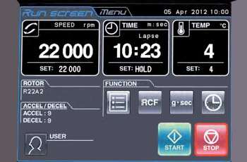 Himac CR22N落地式大容量高速冷凍離心機(jī)采用5.7 "彩色觸幕屏控制,GUI圖形界面,輕松地操作系統(tǒng)或通過(guò)觸摸顯示屏上的圖標(biāo)選擇各種菜單和功能;