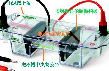 水平電泳槽內(nèi)原位制膠套件包括1個(gè)可透射紫外的凝膠托盤(UV-transparent gel tray/UVTP tray)、1對(duì)制膠擋板(Gel casting gates)、1個(gè)水平調(diào)節(jié)指示器(Leveling bubble)和1套高度固定的水平電泳梳(Fixed-height comb)。