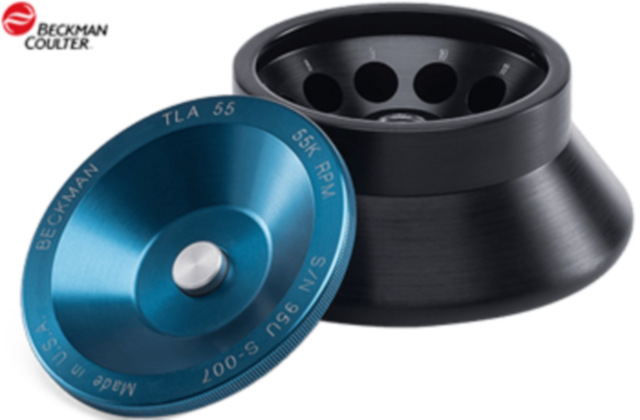 TLA-55角轉頭,最多可容納12×1.5 mL尖底微量離心管,為Beckman Optima MAX-XP、Optima MAX-TL、Optima MAX、MAX-E、Optima TL、Optima TLX和 TL-100全系列臺式超速離心機通用轉頭。
