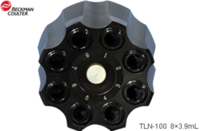 TLN-100近垂直轉(zhuǎn)頭可用于質(zhì)粒DNA、病毒、蛋白、細(xì)胞器等的沉降,脂蛋白、脂質(zhì)等SF漂浮分離,最大樣品容量8×3.9 mL圓底離心管,適用于Beckman Optima MAX-XP、Optima MAX-TL、Optima TL、Optima TLX和TL-100臺(tái)式超速離心機(jī)。