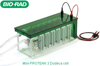 | Mini-PROTEAN 3 Dodeca Cell | Bio-Rad | 1654100 | 1/Pkg | Vertical mini gel electrophoresis cell includes: tank with cooling coil; lid with power cables; clamping frames; buffer dams; drain line; gel releasers. | 詢價 詢價 |