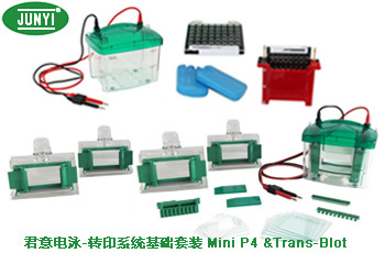 4 | 君意小型蛋白電泳-轉(zhuǎn)印標(biāo)準(zhǔn)套裝 | MTB-003 | 電源-電泳-電轉(zhuǎn)移三合一系統(tǒng) 可獨(dú)立實(shí)現(xiàn)同步進(jìn)行4塊小型凝膠跑膠或同步轉(zhuǎn)膜 配置包括: ■ 電泳儀電源(JY300HE) ■ Mini P-4蛋白電泳槽標(biāo)準(zhǔn)套裝(Mini-P4) ■ 2膜小型凝膠轉(zhuǎn)移槽套裝(MTB-00) □ 轉(zhuǎn)移電極模塊(MTE-01) □ 轉(zhuǎn)印滾筒 1個(gè) | 詢價(jià) |