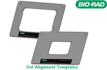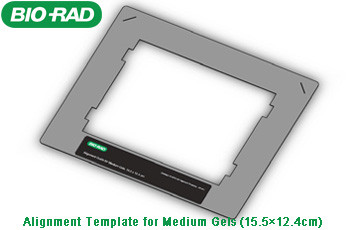 Bio-Rad gel alignment template kit allows four sizes of standard agarose gels to be centered quickly and easily, as well as ensuring consistent placement of gels over time.