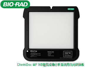 White Light Sample Tray/White Sample Tray,白色樣品托盤/白色樣品盤,又稱為紫外白光轉(zhuǎn)換屏,為2010年后上市的伯樂Gel Doc EZ(停產(chǎn))、GelDoc Go, ChemiDoc Touch(停產(chǎn)), ChemiDoc(12003153)和 ChemiDoc MP 膜凝膠多功能成像分析系統(tǒng)(12003154)采用的透射白光檢測光源款式。