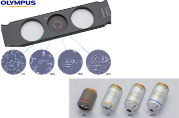 PLN2X物鏡具有的22mm視場(chǎng)和11mm直徑的環(huán)狀光闌,方便快速有效篩選感興趣的細(xì)胞。當(dāng)觀察96孔板時(shí),寬闊的視野允許觀察孔中的所有細(xì)胞而不移動(dòng)載物臺(tái)。