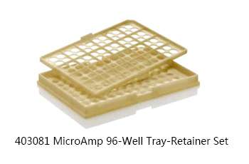 分為MicroAmp 96-Well Tray(N8010541),MicroAmp 96-Well Tray/Retainer Set(403081)和MicroAmp 96-Well Reaction Tube/Tray/Retainer Set(403083) 三款,適用于不同PCR管類型。其共同點(diǎn)是具有與2700、9700、2720 PCR儀的96×0.2mL樣品模塊適應(yīng)的托盤基礎(chǔ),直接將載有反應(yīng)管的96孔托盤放置在熱循環(huán)模塊上,有助于保持全部單個(gè)PCR管或8聯(lián)排管與樣品模塊的均勻密切接觸和受熱均勻。同時(shí)作為PCR支架,分?jǐn)偀嵘w壓力,防止模塊上局部反應(yīng)管受壓不均而變形損壞,影響實(shí)驗(yàn)結(jié)果。