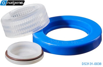 DS3131-0038密封蓋由聚丙烯螺旋外蓋(polypropylene screw closure)和藍(lán)色瓶肩部支撐環(huán)(polypropylene shoulder support ring)、Tefzel ETFE插塞式內(nèi)蓋(Tefzel ETFE plug)和Viton氟橡膠O型墊圈(Viton fluoroelastomer O-ring)組成。與帶有直徑38mm瓶蓋的Nalgene 250mL離心瓶3120-0250、3122-0250、3127-0250配合使用時(shí),安裝在平頂部,可在10000xg或更高速度下使用。DS3131-0038可與Nalgene 250mL離心瓶一起高壓滅菌處理。