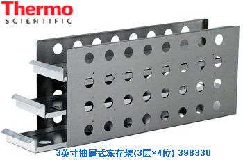 3英寸抽屜式凍存架(3×4位) | Thermo | 398330 | 4個/套 | 款式:3層×4個3英寸凍存盒 外形尺寸: 寬度:5.5 in.(14cm); 深度:22 in.(55.9cm); 高度:9.5 in.(24.0cm); 適用于: Forma 994/995雙門超低溫冰箱上2層 每層可排列4/5個凍存架 | 詢價 |