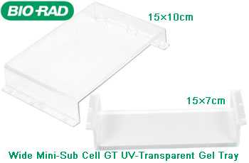 Mini-Sub Cell GT水平電泳槽與7×7cm 凝膠托盤配套,而Wide-Mini-Sub Cell GT需要一個(gè)15×7cm 凝膠托盤組合使用。