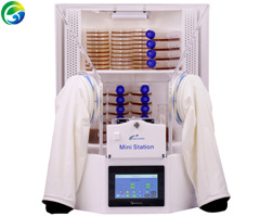 裸手袖套操作:配置長(zhǎng)袖套裸手和標(biāo)配外置式真空泵,腳動(dòng)開關(guān)控制袖套的抽真空和充氮?dú)狻_M(jìn)入工作站的袖套系統(tǒng)經(jīng)過抽真空充氮?dú)獾倪^程,確保人手進(jìn)入工作站時(shí)不帶有氧氣進(jìn)入工作站內(nèi)。
