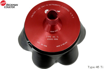 Type 45 Ti型角轉(zhuǎn)頭額定轉(zhuǎn)速為 45000 rpm,具有24°管-軸夾角,可同時(shí)離心6×94mL離心管。離心力足以滿足包括小顆粒沉淀以及使用蔗糖梯度純化病毒和亞細(xì)胞器等應(yīng)用。適用于貝克曼Optima XPN-100/XPN-90/XPN-80系列高端立式超速離心機(jī)和Optima XE-100/XE-90系列基礎(chǔ)型超速離心機(jī)。