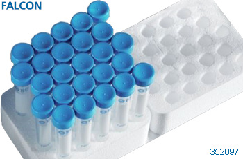 架裝15mL錐形離心管 | Falcon | 352096 | 50pcs/rack, 500pcs/cs | 15mL Conical-Bottom Tube with Dome Seal Screw Cap Material: high-clarity polypropylene Dimensions (Outer diameter × Height): 17×118 mm Maximum RCF: 12000 xg packaging: Rack included, Sterile | 352096 詢價 |